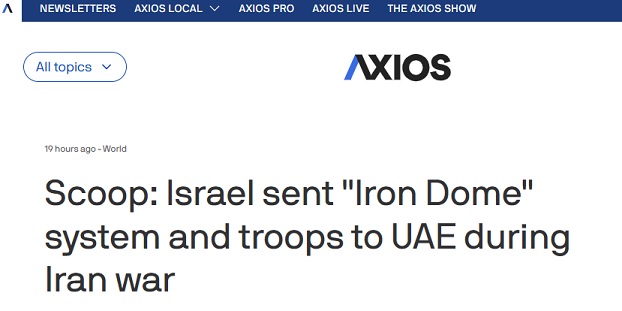 首次披露!美媒独家爆料:以色列在伊朗战争期间向阿联酋部署“铁穹”系统和部队