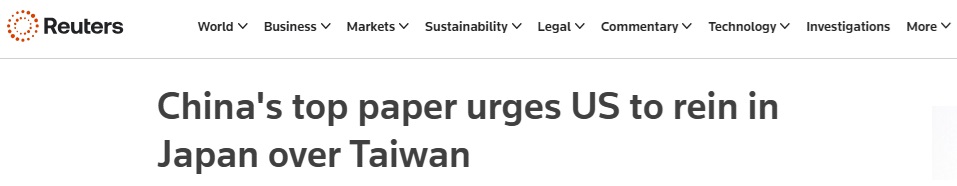 此前,日本首相高市早苗(Sanae Takaichi)就台湾问题发表的言论,引发了中美两国之间的口水战。