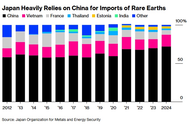 FX168财经报社(亚太)讯 美国彭博社周三(1月7日)发布深度分析文章称,中国正通过对日本实施出口管制,来测试美国总统特朗普(Donald Trump)对美国在亚洲最重要盟友的支持力度——而就在几个月前,特朗普还曾夸口称,他已为“全世界”解决了稀土问题。