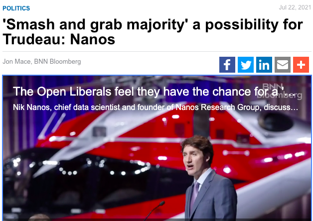 民调初步显示特鲁多获支持信任另外,在今年 7 月,据彭博社(Bloomberg News)委托Nanos民调机构就“大疫情后,你更信任哪个政党处理经济事务?”所做的调查显示,自由党获得了 33% 的支持。加拿大更多的选民信任贾斯汀·特鲁多领导的联邦自由党来管理加拿大的财务,这个结果可能会增强他的信心,而诱惑他触发选举。