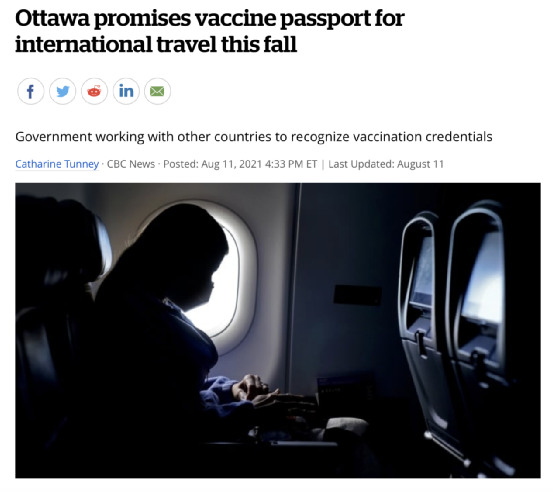 新闻稿中写道:“对于决定旅行的加拿大人,疫苗接种证明将向外国边境官员提供旅行者的疫苗接种历史,以评估是否满足该国的公共卫生要求,并在加拿大人归国时提供可信赖和可验证的凭证。”