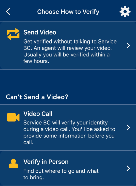 现阶段有以下三种方式:按指示要求完成一小段视频录制,工作人员在2个工作日内完成验证;与工作人员现场视频连线,可马上完成验证;或者携带设备和健康卡亲自前往BC Service站点进行验证。