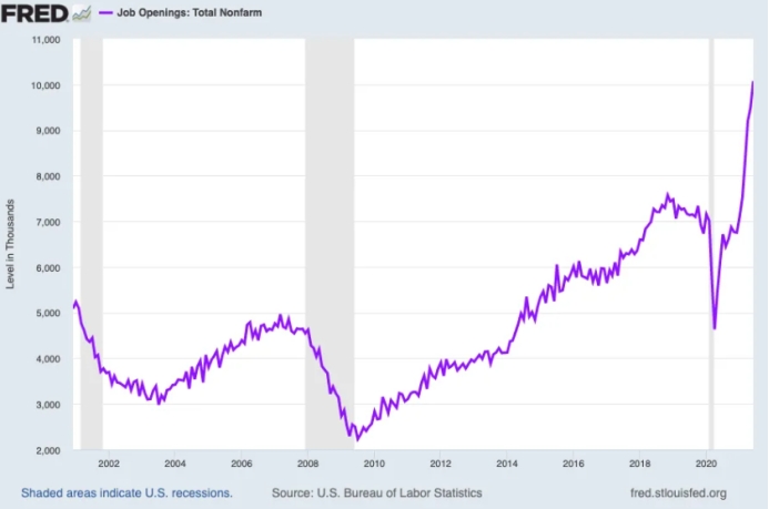 在这一职位空缺的上升中,一张显示对工人需求激增的图表——在我们看来——是对当前劳动力市场状况的最佳写照。