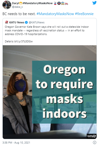 “美国俄勒冈州都宣布在室内强制戴口罩了,BC也该这么做!#开除Bonnie”