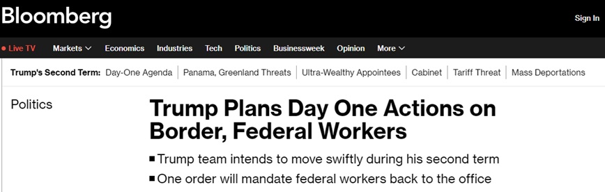 彭博社报道指出,特朗普计划签发的行政令包括,要求采取行动收紧过境限制;授权联邦政府完成未建好的边境墙;建立大规模驱逐的机制;以及剥夺庇护城市的联邦资源直至它们停止为无证移民提供保护。