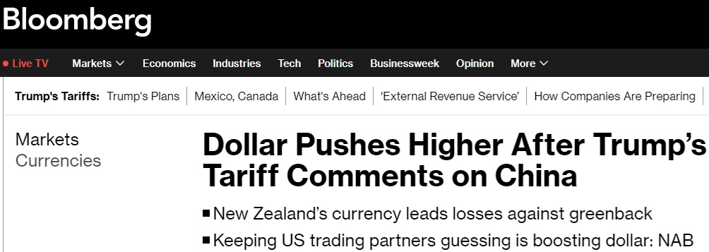 特朗普对中国的关税评论推动美元应声跳涨