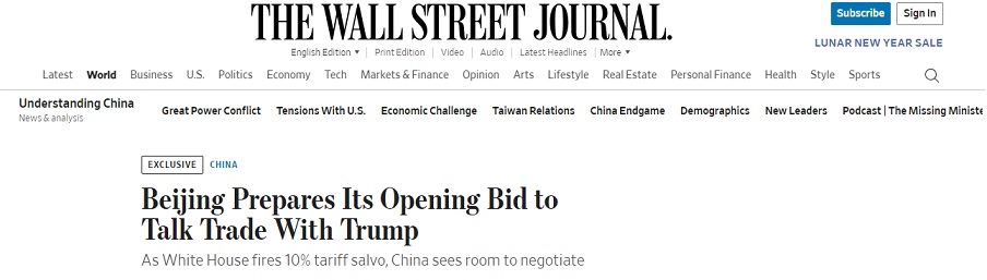 FX168财经报社(亚太)讯 美国《华尔街日报》当地时间周一(2月3日)发布独家报道称,北京方面正准备提出初步方案,试图阻止特朗普(Donald Trump)政府进一步加征关税和实施技术限制,这表明中国渴望进行贸易谈判。