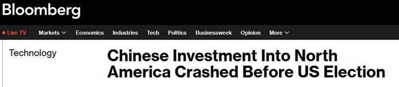 中美突传重大信号!彭博:中国对北美的投资在美国大选前惊现暴跌