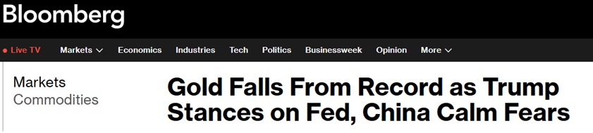 彭博:特朗普向中国和鲍威尔做出和解姿态 金价自历史高位一度回调187美元