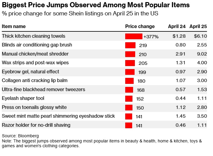 彭博社数据显示,由于美国消费者在关税引发的价格上涨之前囤积了从化妆刷到家用电器等各种商品,Temu和Shein的销售额在3月和4月初出现反弹。两家公司本月早些时候均宣布将在美国上调价格。