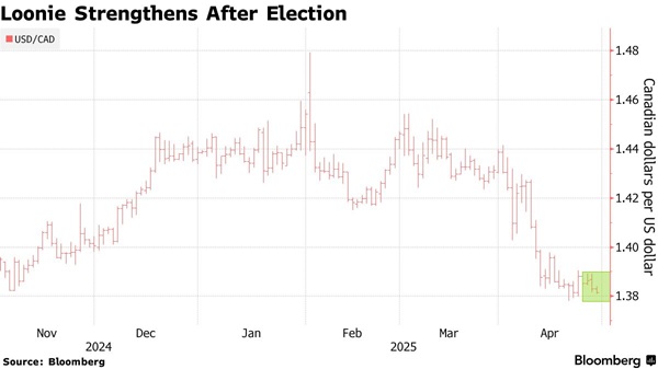 由于预计卡尼将在选举中获胜,这位前央行行长将继续担任总理,其所在的自由党将继续执政,加元兑美元汇率因此上涨。
