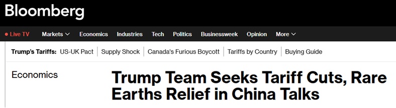 中美周末谈判突传重磅!彭博:特朗普团队考虑大幅降低关税 寻求中国放松稀土管制
