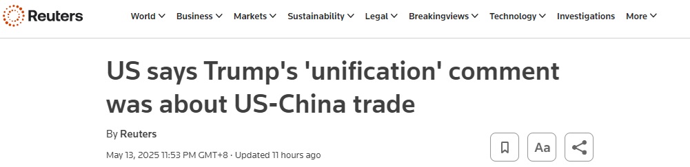 “美国在台协会”在一份声明中表示,特朗普谈论的是美中贸易。