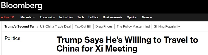 FX168财经报社(亚太)讯 美国彭博社当地时间周五(5月16日)最新报道称,美国总统特朗普(Donald Trump)表示,他愿意前往中国与中国国家主席习近平就外交政策和经济问题进行会谈。