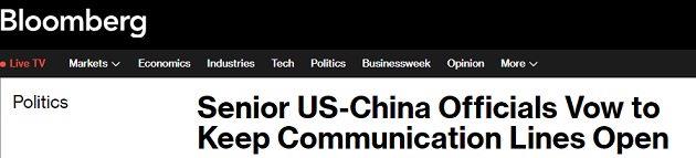 中美突发重大信号!彭博:中美高级官员誓言保持沟通渠道畅通