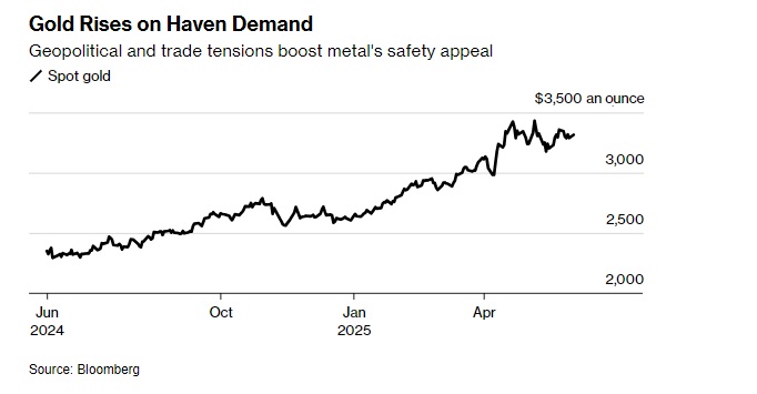 彭博社指出,所有这些都恢复了黄金作为避险资产的部分吸引力。自4月份触及3500美元/盎司以上的纪录高位以来,黄金的避险吸引力有所减弱。不过,今年迄今为止,黄金价格仍上涨25%以上。