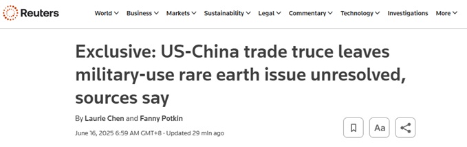 FX168财经报社(亚太)讯 英国路透社周一(6月16日)发布独家报道称,两位了解谈判详细结果的人士告诉路透社,在伦敦达成的新的美中贸易休战协议并未触及与国家安全相关的关键出口限制领域,路透社称,这一尚未解决的冲突对达成更全面的协议构成威胁。