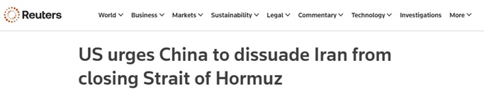 FX168财经报社(亚太)讯 英国路透社报道称,在美国对伊朗核设施实施打击后,美国国务卿卢比奥(Marco Rubio)周日(6月22日)呼吁中国劝说伊朗不要关闭霍尔木兹海峡。