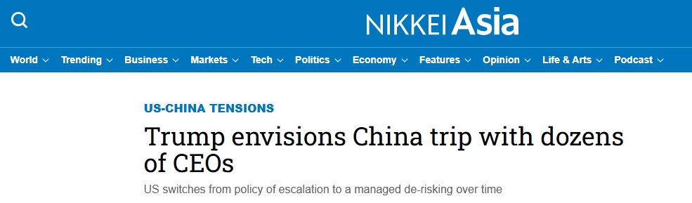 中美突传重磅!日经:特朗普计划与数十位首席执行官一起访华