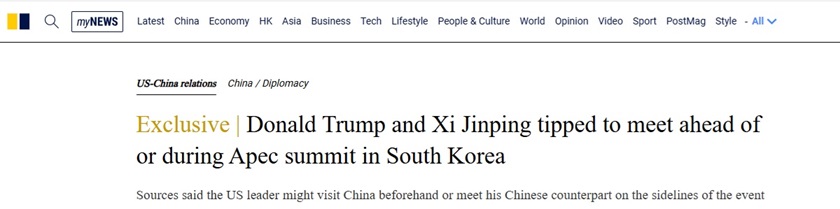 《南华早报》指出,分析人士认为,在APEC峰会前于中国举行会晤,或是在峰会期间举行场边会谈,是目前最可能的选项。