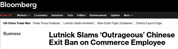 中美重量级表态!卢特尼克谴责中国禁止美商务部雇员离境“令人发指”