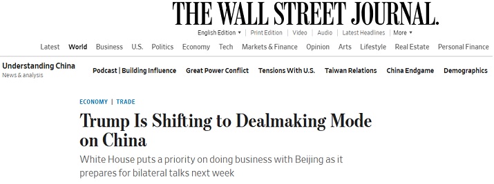 中美突传重磅!华尔街日报:特朗普转向交易模式 寻求与中国达成经济协议