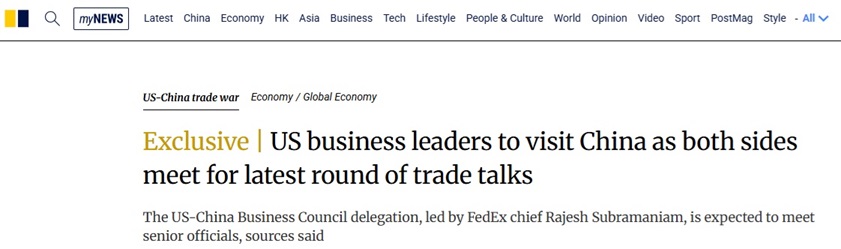 《南华早报》称,此次访问将是美国总统特朗普(Donald Trump)4月发动新一轮关税战以来,美国最高级别的商务代表团访华。