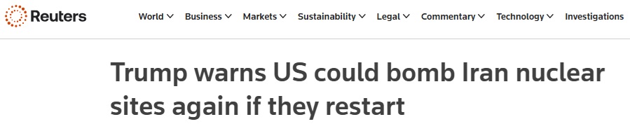 FX168财经报社(亚太)讯 美国总统特朗普(Donald Trump)周一(7月28日)警告称,如果德黑兰试图重启上个月遭到美国轰炸的核设施,他将下令美国对伊朗核设施发动新的袭击。
