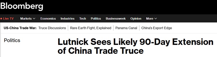 针对美国是否考虑延长中美关税战休战期3个月,卢特尼克周一(7月28日)接受福克斯新闻访问时说:“这是可能的结果吗?当然,看似朝着那个方向前进,但我们还是把决定权留给特朗普总统吧。”