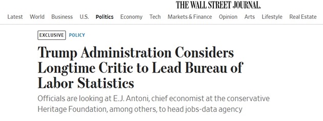 报道指出,接受面试的人员之一是传统基金会(Heritage Foundation)的首席经济学家E.J.安东尼(E.J. Antoni),他长期以来一直批评该机构收集就业数据的方法。