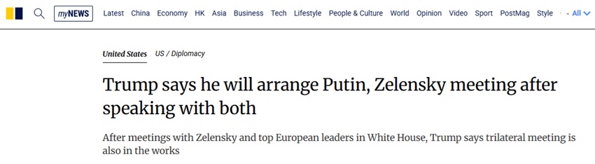 此前,特朗普在白宫举行了一系列会晤,其中包括与泽连斯基的面对面会晤,并在会谈中提出了美国军队支援乌克兰的可能性。