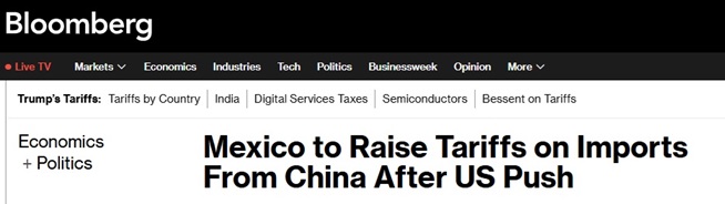美国向该国最大贸易伙伴墨西哥施压,要求其阻止廉价中国商品流入该国,部分原因是特朗普指责这些产品正在进入墨西哥,然后向北进入美国。