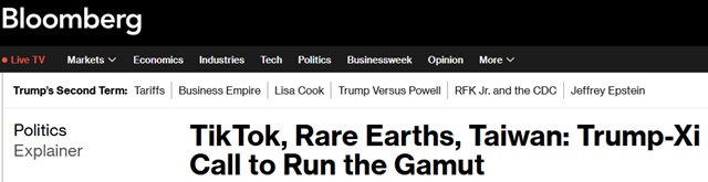FX168财经报社(亚太)讯 美国彭博社周三(9月17日)报道称,美国总统特朗普(Donald Trump)和中国国家主席习近平本周将进行自6月以来的首次直接交流,届时将讨论很多议题,其中TikTok、波音飞机、稀土磁铁和台湾问题等是主要谈判议题。