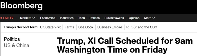 周五的通话发生在美中关系趋于缓和的背景下,此前双方互加关税引发市场震荡并加剧全球经济放缓担忧。当前的90天关税休战期预计将持续到11月初。