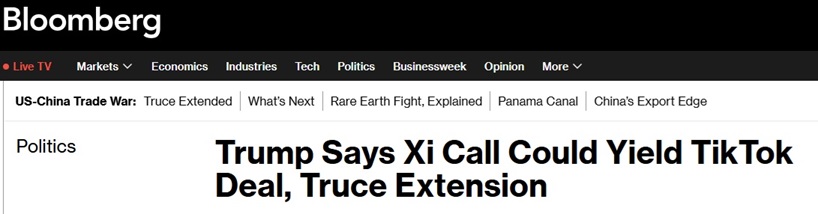 此次通话将是自6月以来世界最大经济体领导人之间的首次直接接触,其中字节跳动(ByteDance Ltd.)旗下TikTok的未来以及华盛顿和北京之间的关税休战是主要议题。