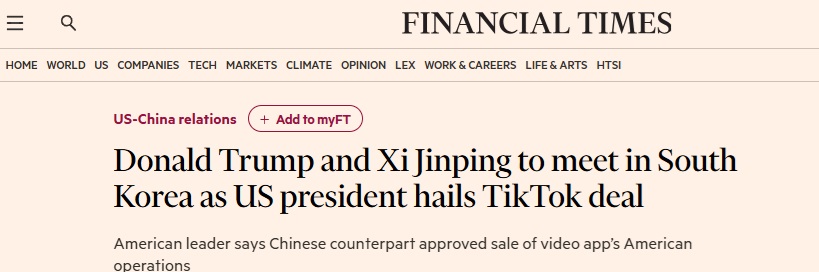 FX168财经报社(亚太)讯 英国《金融时报》9月20日报道称,美国总统特朗普(Donald Trump)表示,他将于下个月在韩国会见中国国家主席习近平,并于明年初前往中国举行峰会。两位领导人同意进行自2019年以来的首次会晤。
