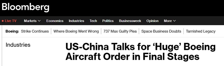 据彭博社上个月报道,波音公司一直在努力与中国敲定一项多达500架飞机的销售协议,此举将结束自2017年美国总统特朗普(Donald Trump)上次访华以来的销售低迷期。