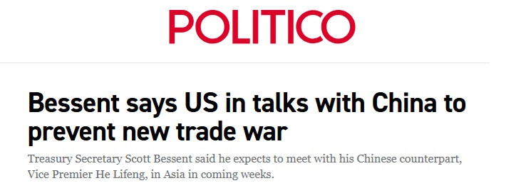 FX168财经报社(亚太)讯 美国新闻网站Politico周一(10月13日)报道称,美国财政部长贝森特(Scott Bessent)周一表示,美国正在与中国就如何缓解上周重新点燃的贸易战进行谈判。此前,北京方面宣布计划对用于多种高科技产品的稀土磁体实施出口管制。