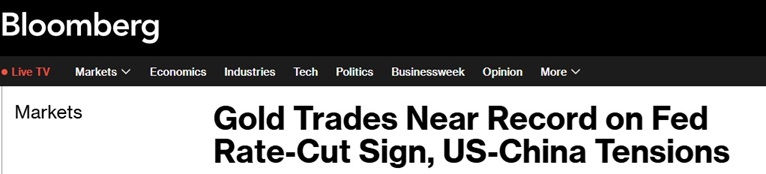 受中美摩擦升级以及美联储今年将再降息两次的押注的推动,金价周三升向历史新高。