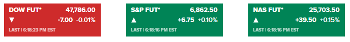 特朗普批准英伟达H200 芯片对华销售,使美国政府可获得一笔丰厚的份额。消息传来之后,美股股指期货小幅上涨。道琼斯工业平均指数期货在平盘附近徘徊。标普期货上涨 0.1%,而纳斯达克 100 指数期货上涨近 0.2%。