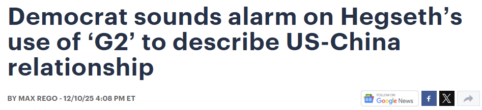 FX168财经报社(北美)讯 美国众议院“中国共产党问题特设委员会”民主党首席议员拉贾·克里希纳莫西(Raja Krishnamoorthi)周三(12月10日)致信国防部长皮特·赫格塞斯(Pete Hegseth),要求其澄清近期使用“G2”来描述美中关系的表述。克里希纳莫西警告称,该词汇可能传递危险信号,暗示美国与中国为“共同负责全球事务的两大国”,从而边缘化美国的民主盟友与伙伴。