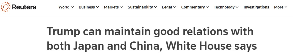 白宫发言人莱维特(Karoline Leavitt)在新闻发布会上说:“日本是美国的重要盟友,这从(特朗普与日方)个人关系以及我们与日本持续的贸易往来中都可见一斑。”