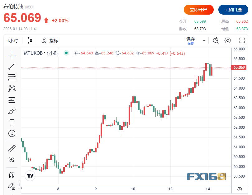在经济与市场层面,特朗普还表示其政府正在研究帮助伊朗民众恢复互联网接入,包括与埃隆·马斯克讨论“星链(Starlink)”网络。同时,特朗普本周宣布将对所有“与伊朗做生意”的国家加征25%关税。受美国可能介入伊朗局势的担忧推动,油价周二突破65美元/桶,为11月以来首次;美市交易时段,布伦特原油上涨2%,报65.0美元/桶。