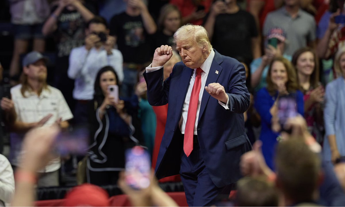 图注:2024 年密歇根州集会上,特朗普跳起标志性舞蹈