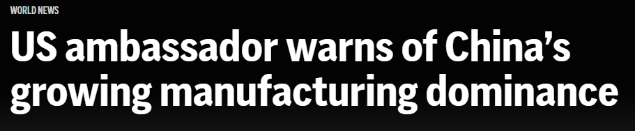 美国驻华大使戴维·珀杜(David Perdue)在北京对商界与政府人士表示,中国成为制造业强国值得祝贺,但他也呼应了欧洲等地区的担忧,即中国出口可能对其他国家的工厂与就业构成威胁。