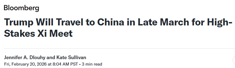 FX168财经报社(北美)讯 据外媒报道,美国总统特朗普计划于3月31日至4月2日访问中国,并与中国国家主席习近平会晤。此行正值中美贸易关系再度陷入不确定性之际——美国最高法院日前推进否决特朗普依据“紧急权力”实施的大范围关税安排,预计将打乱双方围绕去年达成的“降税与出口限制缓和”一年期休战协议的续签节奏。与此同时,台湾议题、美国在中南美与中东的动作也可能为谈判增添变量。