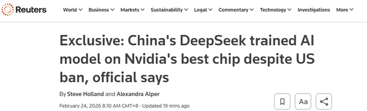 路透社最先报道的、关于美国政府确认DeepSeek获得相关芯片的消息,可能会进一步加剧美国华盛顿决策层的分歧——他们正艰难权衡应在何处划定界限,以限制中国获取美国AI半导体芯片这一“皇冠上的明珠”。