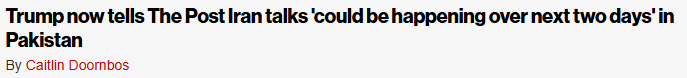 不过,就在与《纽约邮报》记者通话后不久,特朗普又再次致电对方,补充了关于美伊谈判前景的最新判断。他这次释放出更积极的信号,称未来两天内局势可能出现新变化,而且美方现在更倾向于前往巴基斯坦。