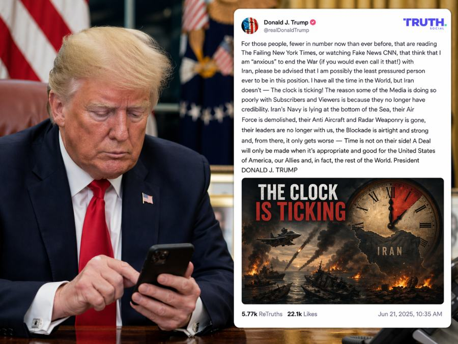 特朗普在Truth Social上发文称:“我可能是有史以来在这种位置上最没有压力的人。我有的是时间,但伊朗没有——时钟正在滴答作响!”
