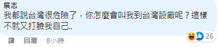 有网友在陆行之贴文下留言表示:“I公司就找T公司代工生产就好了啊”、“来台建厂真的是最快速的解方”,而也有网友嘲讽英特尔首席季辛格(Pat Gelsinger),“我都说台湾很危险了,你怎么会叫我到台湾设厂呢?这样不就又打脸我自己嘛!”